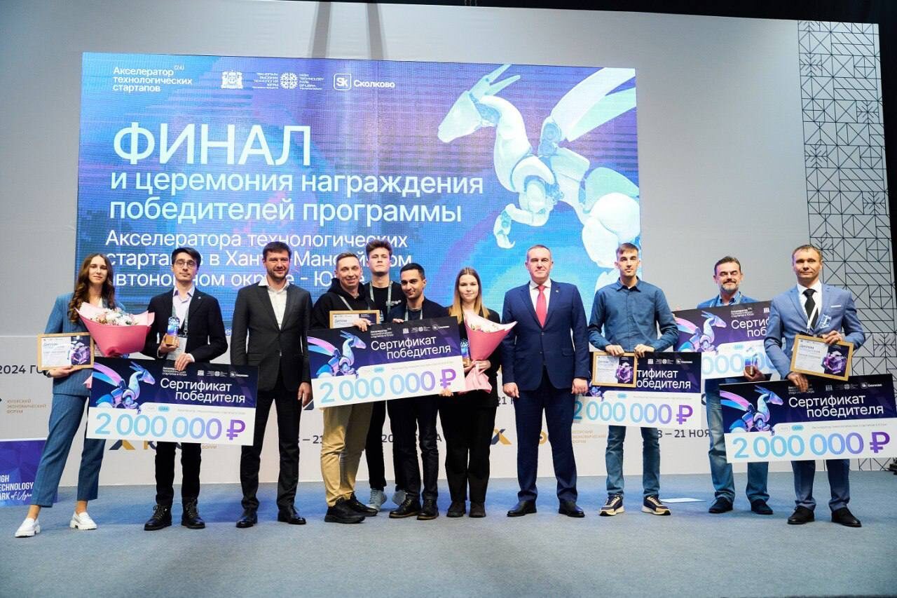 The awarding ceremony took place the day before in Khanty-Mansiysk on the main stage of the Yugra Economic Forum. Ruslan Kukharuk, Governor of Yugra, and Yuri Saprykin, Deputy Chairman of the Board for Regional Development, Chief Managing Director of the Skolkovo Foundation, announced the five winners of this year's accelerator program and awarded grant certificates for the implementation of technological projects in Yugra.