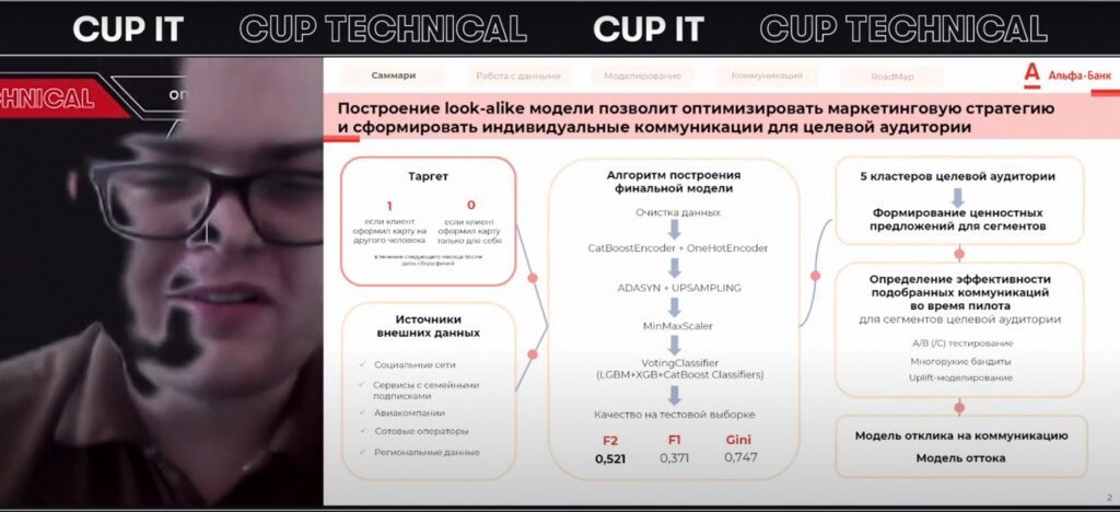 "The participation was in online format. We had a team of 5 people from all over Russia. So, the team captain was from Novosibirsk, the other team members were from Moscow, Kazan and even Lipetsk. The name of the team was "Parallel-55". In total, there were about 15 teams in our field called Data Science. The organisers gave us two cases - the first one was about ranking the popularity of comments on a social network, the second one was about building a machine learning model to attract customers to a banking product. I was mainly involved in data preparation and research, as well as training part of the models and explanatory analytics," Arsenty shared his impressions.